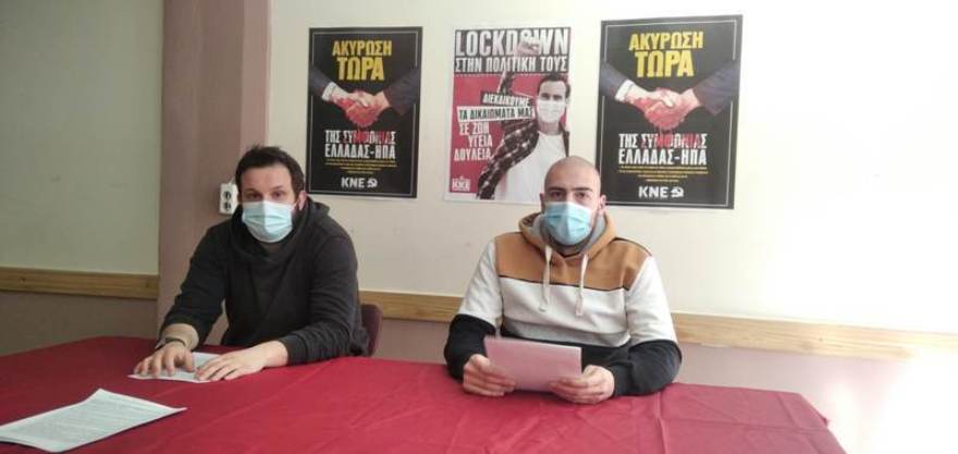 Τα παραπάνω τονίστηκαν κατά τη διάρκεια σχετικής συνέντευξης τύπου με ομιλητές: τον Κοδέλα Παναγιώτη, Γραμματέα του Συμβουλίου Περιοχής Θεσσαλίας της ΚΝΕ και τον Ζορμπά Αλέξανδρο, μέλος της Επιτροπής Περιοχής Θεσσαλίας του ΚΚΕ.