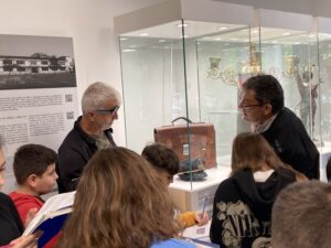 Η δράση, στην οποία συμμετείχε στο πλαίσιο της μεταπτυχιακής της εκπαίδευσης ως εξωτερική αξιολογήτρια και η φοιτήτρια του ΠΑΔΑ, Ηλιάνα Κασιούρα, είχε διάρκεια 40 περίπου λεπτά. Ένα πηλήκιο και μια σχολική σάκα έγιναν αφορμή για παρατήρηση και συζήτηση γύρω από τις ποικίλες πληροφορίες που μεταφέρουν τα μουσειακά αντικείμενα, την κοινωνία που τα παρήγαγε, την εκπαίδευση, το φύλο, τα ατομικά και συλλογικά βιώματα και τις μνήμες που συνδέονται με τα υλικά κατάλοιπα του παρελθόντος. Οι μαθητές κράτησαν τις σημειώσεις τους και συμπλήρωσαν τα πεδία ενός εκπαιδευτικού φυλλαδίου που τους διανεμήθηκε, με σκοπό αυτό να αποτελέσει υλικό επεξεργασίας και μετά το πρόγραμμα, όταν επιστρέψουν στη σχολική αίθουσα.