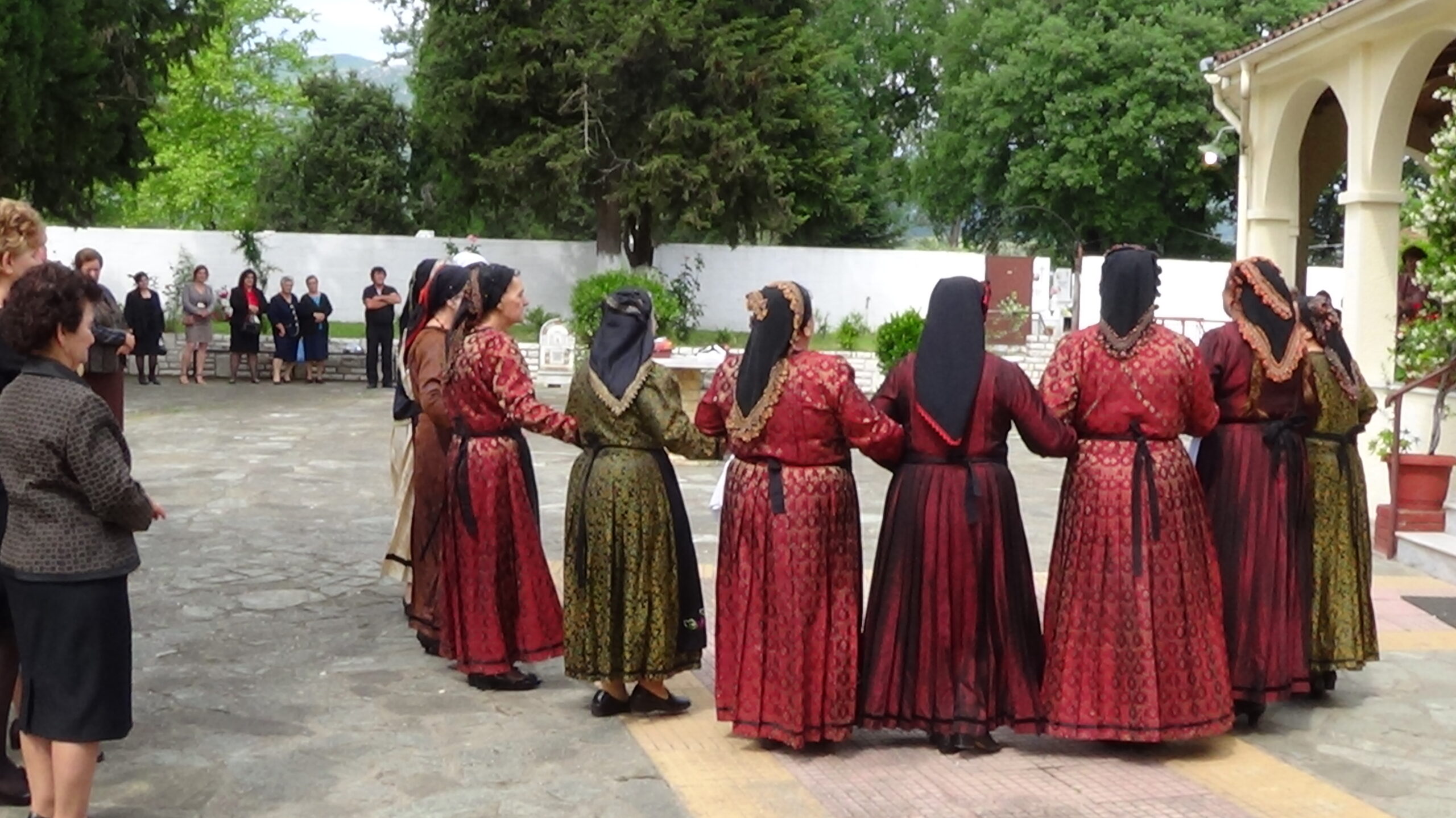 Οι γυναίκες και, παλαιότερα, και οι άνδρες θα χόρευαν τα παραδοσιακά τραγούδια της κοινότητας και, ειδικά, τα «μαϊάτικα», κατά την προφορική παράδοση, το πρωί μετά τη Θεία Λειτουργία έξω από την εκκλησία για λίγο, «ένα σχοινάκι», όπως λέγεται, τοπικώς, δηλαδή για λίγο και για το καλό, όπως το «Το Μάη Κώστας γεννήθηκε…», το «Τώρα είναι Μάης και άνοιξη», ακόμα, και τα θηλυκωτά(«θ΄λυκωτά») του Πάσχα, αν το πανηγύρι ευρίσκετο μέσα στην πασχαλινή περίοδο των σαράντα ημερών. Κατά τη μαρτυρία της κας Φωτεινής Φιλίππου ο χορός λάμβανε χώρα, μετά την τέλεση του εσπερινού, παλαιότερα, μόνο ή, κυρίως, και, μετά, με τα όργανα, και, έπειτα, και το πρωί. Το πρώτο τραγούδι «Το Μάη Κώστας γεννήθηκε…» αποτελεί μία θεσσαλική παραλλαγή του τραγουδιού του ακριτικού κύκλου, το οποίο είναι και χορός, όπως συμβαίνει στην περιοχή της Θεσσαλίας,», και το οποίο χαρακτηρίζεται ως θηλυκωτό(«θ’λυκωτό»), αφού η λαβή των χορευτών είναι από τους αγκώνες και τις παλάμες των χεριών, οι οποίοι θηλυκώνουν(«θ’λυκώνουν), δένουν τους χορευτές, τον έναν με τον άλλον, ως «θηλειά», τους «κουμπώνουν», ενώ τα βήματα είναι σ’ αυτά του ιδιότυπου της ημιορεινής θεσσαλικής παραλλαγής του συρτού χορού στα τρία, «συρτού» στην τοπική γλώσσα. Μετά θα διασκέδαζαν τόσο στην πλατεία όσο και στα μαγαζιά, στο κέντρο του χωριού, όπου θα συνέχιζαν τη διασκέδαση με όργανα ή με άλλο μέσο ως αργά.