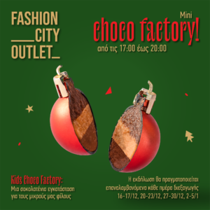 Ένα μικρό, αλλά μαγικό εργοστάσιο σοκολάτας έρχεται στο Fashion City Outlet στις 16 Δεκεμβρίου! O Μεσιέ Σοκολά και το Σοκολατο-ξωτικό Ερλ θα περιμένουν τους μικρούς μας φίλους στο Mini Choco Factory, για να φτιάξουν τη μαγική σοκολάτα των Χριστουγέννων, που θα προσφέρουν στα παιδιά όλου του κόσμου.