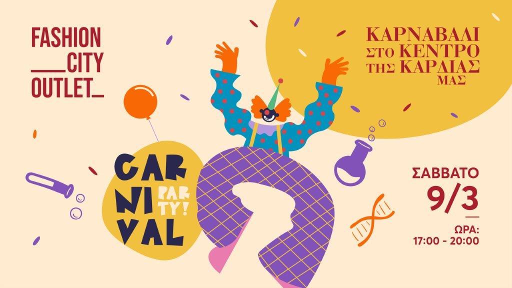 Το τρελό καρναβάλι έρχεται στο Fashion City Outlet για να ενθουσιάσει μικρούς και μεγάλους και φέτος. Αποκριάτικα party’s, ξυλοπόδαροι, κλόουν, δημιουργικές γωνιές, γαϊτανάκι, δ και ατελείωτη καρναβαλική διάθεση.