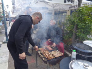 Από το πρωί άρχισαν να ανάβουν οι ψησταριές και από τις 12 περίπου το μεσημέρι και μετά, άρχισαν τα πρώτα ψησίματα.