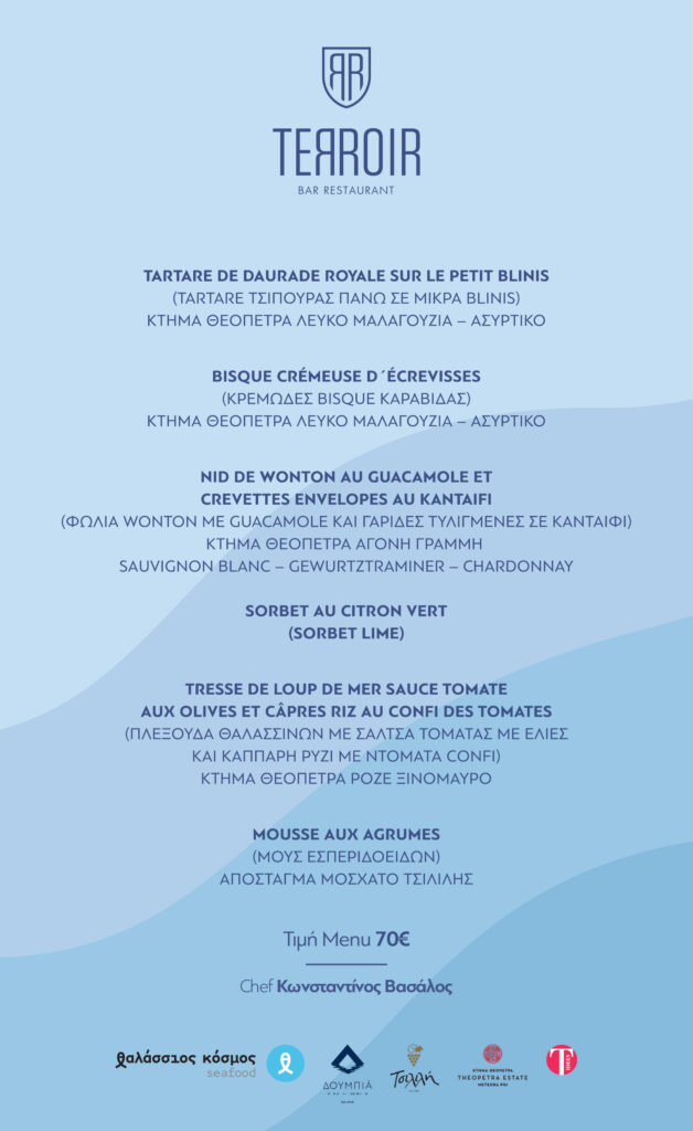 Η βραδιά θα ξεκινήσει στις 21:00 με ένα πιάτο καλωσόρισμα και θα συνεχιστεί με τη γευστική πανδαισία του θαλασσινού μενού. Το TERROIR Bar Restaurant είναι γνωστό για την άψογη εξυπηρέτηση και την προσοχή στη λεπτομέρεια, και αυτή η βραδιά δεν θα αποτελέσει εξαίρεση.