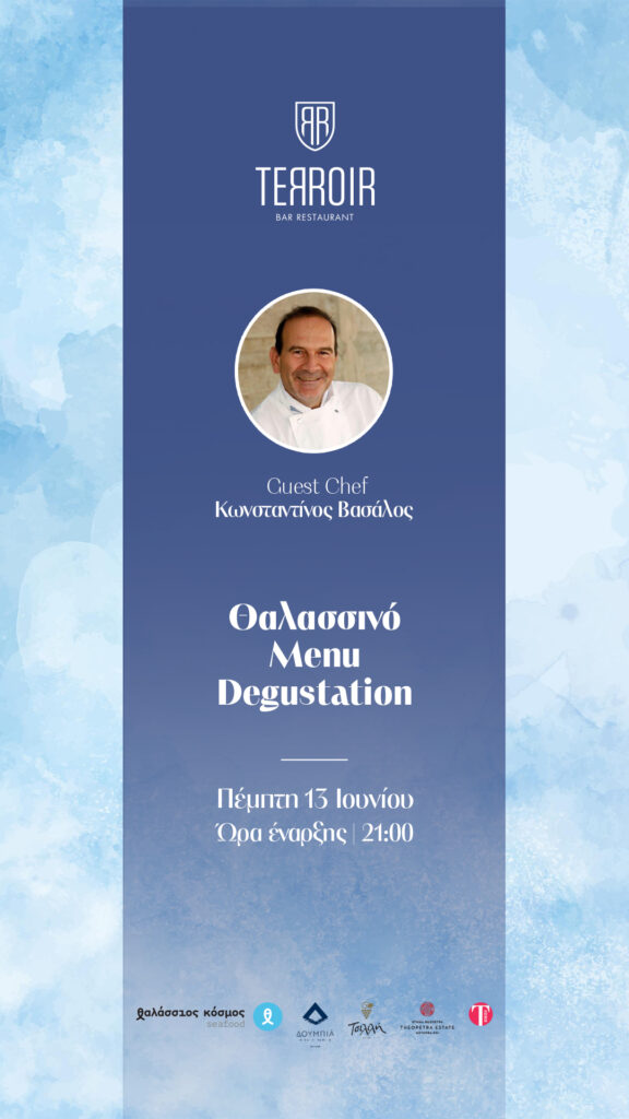 Ο καλεσμένος Chef, Κωνσταντίνος Βασάλος με μεγάλη εμπειρία στη μεσογειακή κουζίνα, έχει επιμεληθεί ένα μενού που συνδυάζει την παράδοση με τη μοντέρνα γαστρονομία, χρησιμοποιώντας τα πιο φρέσκα και ποιοτικά υλικά της αγοράς.