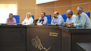 Αυτά ανέφερε στο πλαίσιο συνέντευξης Tύπου που παραχώρησε στη Λάρισα ο Περιφερειάρχης Θεσσαλίας Δημήτρης Κουρέτας παρουσία του Υφυπουργού Κλιματικής Κρίσης και Πολιτικής Προστασίας Χρήστου Τριαντόπουλου, της Αντιπεριφερειάρχη Μαγνησίας Αννας-Μαρίας Παπαδημητρίου και των θεματικών Αντιπεριφερειαρχών Απόστολου Καναβού , Γιάννη Αναστασίου και Φώτη Λαμπρινίδη.