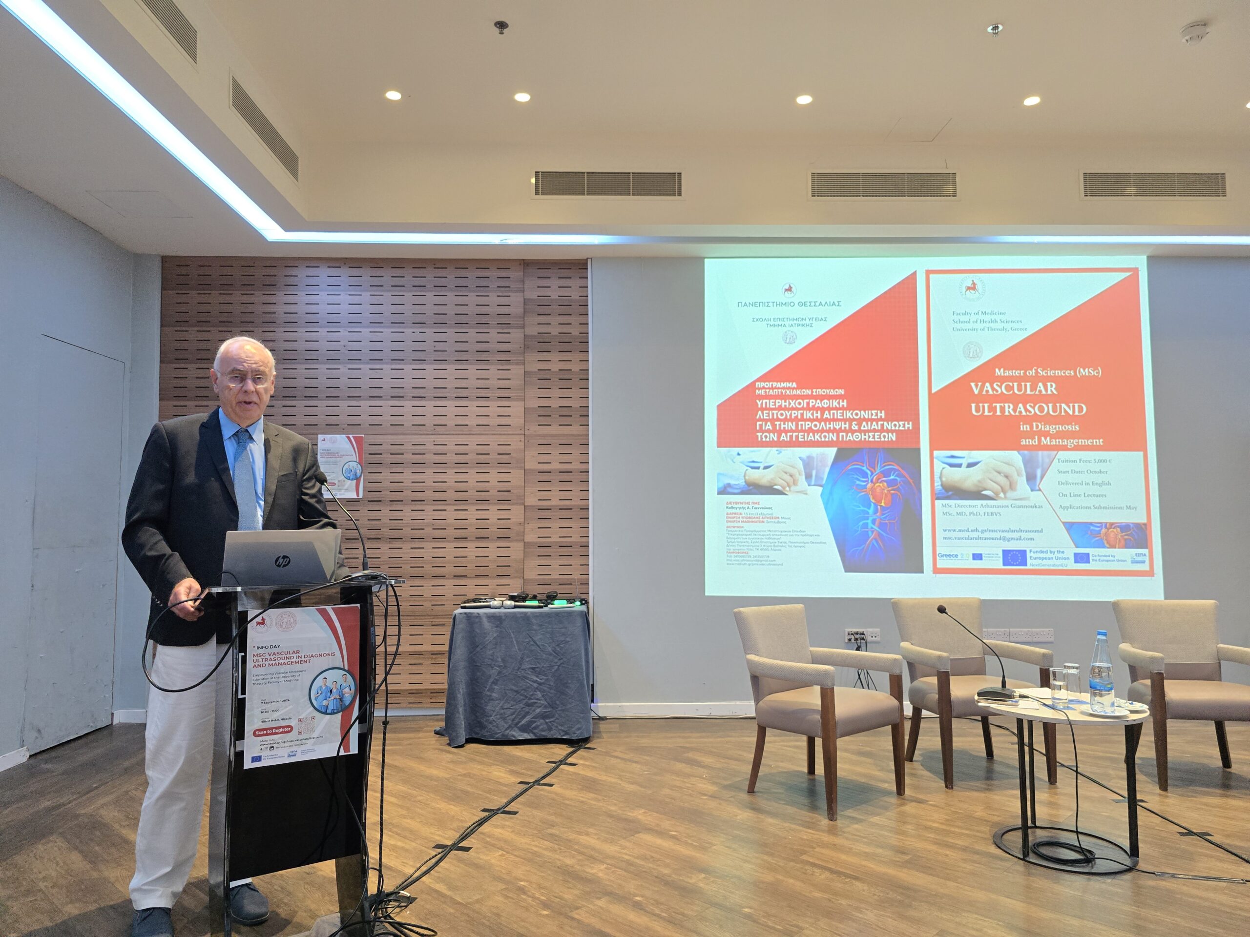 Την εκδήλωση συντόνισε ο Δ/ντης του Ξενόγλωσσου Προγράμματος Σπoυδών “MSc Vascular Ultrasound in Diagnosis and Management” κος Αθανάσιος Δ. Γιαννούκας, Καθηγητής Αγγειοχειρουργικής στο Ιατρικό Τμήμα του Πανεπιστημίου Θεσσαλίας και Διευθυντής της Αγγειοχειρουργικής Κλινικής στο Πανεπιστημιακό Νοσοκομείο Λάρισας.