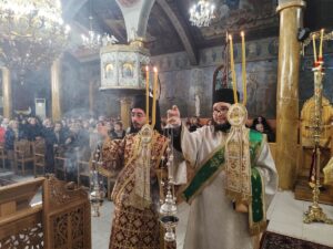 Με κατάνυξη και πνευματική χαρά τελέσθηκε το απόγευμα της Δευτέρας 24 Νοεμβρίου 2025 μια ιδιαίτερη λατρευτική σύναξη στον Ιερό Ναό Αγίας Παρασκευής Καρδίτσης, όπου ο Σεβασμιώτατος Μητροπολίτης μας κ. Τιμόθεος υποδέχθηκε αποτμήματα των ιερών λειψάνων των αγίων νεοφανών μαρτύρων Ραφαήλ, Νικολάου και Ειρήνης. Η παρουσία των τιμίων λειψάνων αποτελεί μεγάλη ευλογία για τον ευσεβή λαό της πόλης, ο οποίος προσέρχεται με σεβασμό για να λάβει τη χάρη και τον αγιασμό των αγίων.