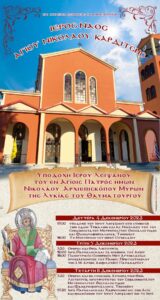 17.30 Ιερά Παράκληση και Χαιρετισμοί εις τον Άγιο και εναπόθεση του Ιερού Λειψάνου εις το Ιερό.