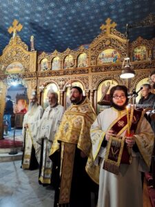 Ακολούθως, ο Σεβασμιώτατος χοροστάτησε στην ακολουθία του Εσπερινού, ευχαριστώντας τον Θεό και την Υπεραγία Θεοτόκο για τη συνεχή προστασία και παρουσία Της στη ζωή των πιστών.